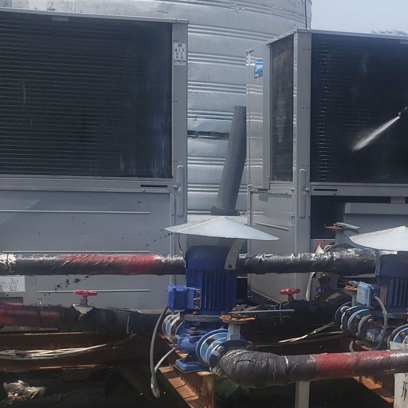 這兩臺美的的熱水機(jī),夏季整個冷凝器堵塞嚴(yán)重。整個翅片都被楊絮鋪滿,制熱效果達(dá)不到理想狀態(tài),沒有之前