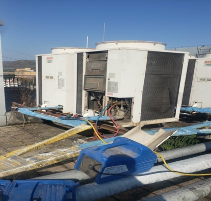 今天是一臺三洋多聯機報故障h03排氣溫度過低,對于排氣溫度過低這樣的故障是很少的,也很不常見,到現場開機這個時候開的是制熱模式,開機壓縮機運行正常,電流偏低,按照鄭州三洋多聯機的常規檢查,又檢查排氣傳感器阻值也正常。開機大致運行了30分鐘故障也沒有顯示。制熱效果很不好,這個時候初步斷定是制熱制冷劑不足的原因,把壓力表鏈接上顯示高壓只有0.12MP低壓只有0.02Mp 。故障現象為制冷劑缺少。這個時候我們用專用制冷劑回收機進行制冷劑回收。